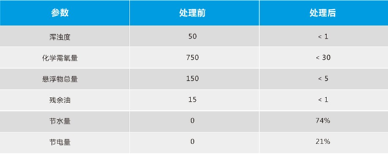 目標(biāo):減少COD,剩余油以及顆粒物質(zhì),循環(huán)精密過(guò)濾后的工業(yè)污水至廢水廠并作為洗滌水使用,節(jié)省水耗以及能耗。