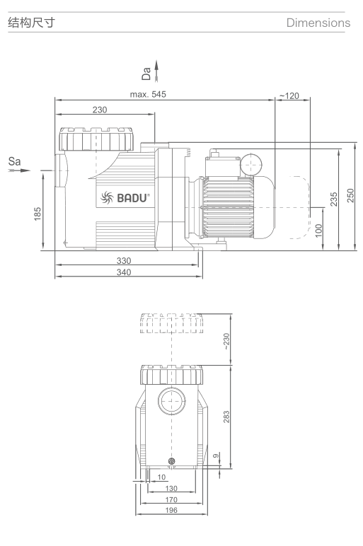 通過一個(gè)過濾器系統(tǒng),游泳池的水循環(huán)。泵可以安裝最大的距離水位3米處或低于水的水位。為節(jié)能泵,適用于大型私家泳池、酒店泳池和特殊定制泳池。