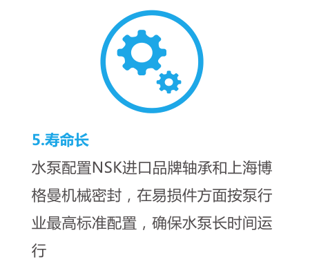 水泵配置NSK進口品牌軸承和上海博格曼機械密封,在易損件方面按泵行業(yè)標(biāo)