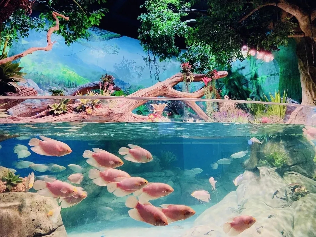 阜陽(yáng)堯泰漢海海洋公園,占地面積約80畝,建筑面積約3萬(wàn)平方米,總水體量約1.5萬(wàn)立方米,是集海洋生物展示、海洋動(dòng)物表演、海洋科普教育、海洋風(fēng)格娛樂(lè)休閑多位一體的綜合性海洋公園,公園規(guī)劃建有游園服務(wù)樓、熱帶雨林館、海獅表演館、深海大洋館、海豚表演館、兒童互動(dòng)館共6個(gè)分體式場(chǎng)館。